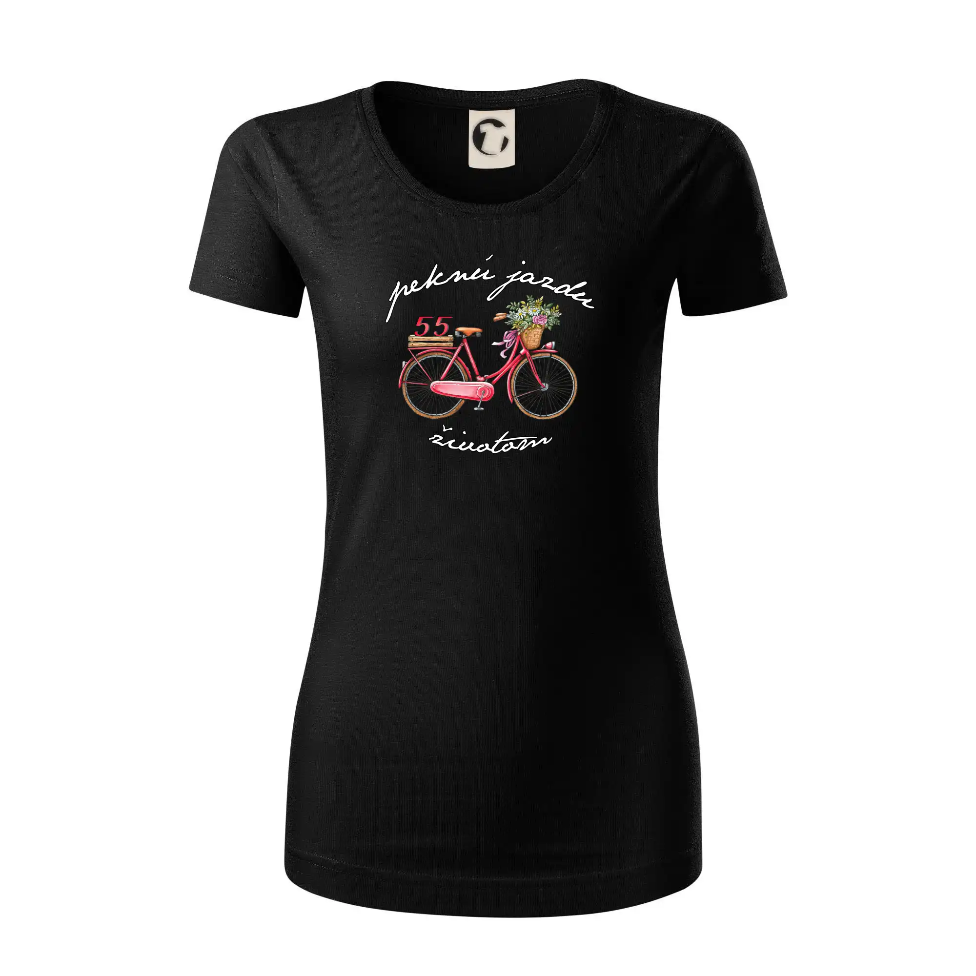 Narodeninové tričko pre babičku alebo mamičku, ktorá oslavuje 55 rokov, s motom "peknú jazdu životom". Štýlový bicykel ako darček na 55. narodeniny pre ženu. Tričko pre babičku alebo mamičku, ktorá oslavuje jubileum 55 rokov.