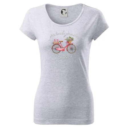 Narodeninové tričko pre babičku alebo mamičku, ktorá oslavuje 55 rokov, s motom "peknú jazdu životom". Štýlový bicykel ako darček na 55. narodeniny pre ženu. Tričko pre babičku alebo mamičku, ktorá oslavuje jubileum 55 rokov.