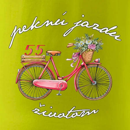 Narodeninové tričko pre babičku alebo mamičku, ktorá oslavuje 55 rokov, s motom "peknú jazdu životom". Štýlový bicykel ako darček na 55. narodeniny pre ženu. Tričko pre babičku alebo mamičku, ktorá oslavuje jubileum 55 rokov.