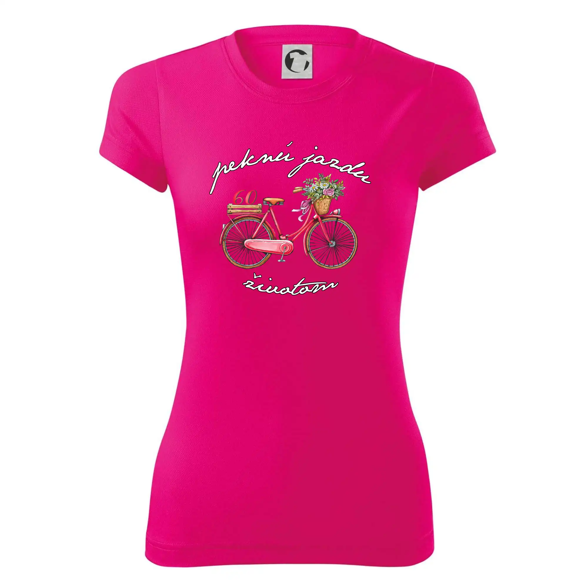 Narodeninové tričko pre babičku, ktorá oslavuje 60 rokov, s motom "peknú jazdu životom". Štýlový bicykel ako darček na 60. narodeniny pre ženu. Tričko pre babičku, ktorá oslavuje jubileum 60 rokov.