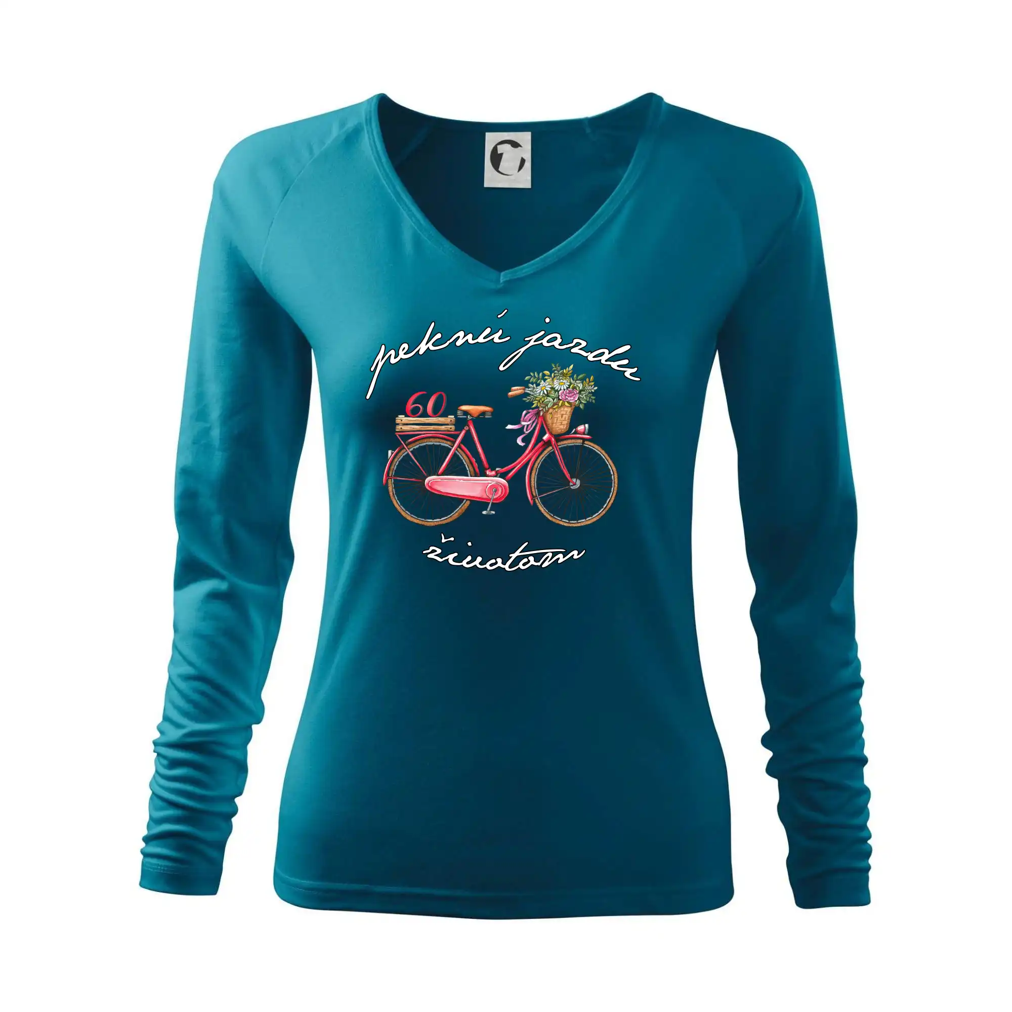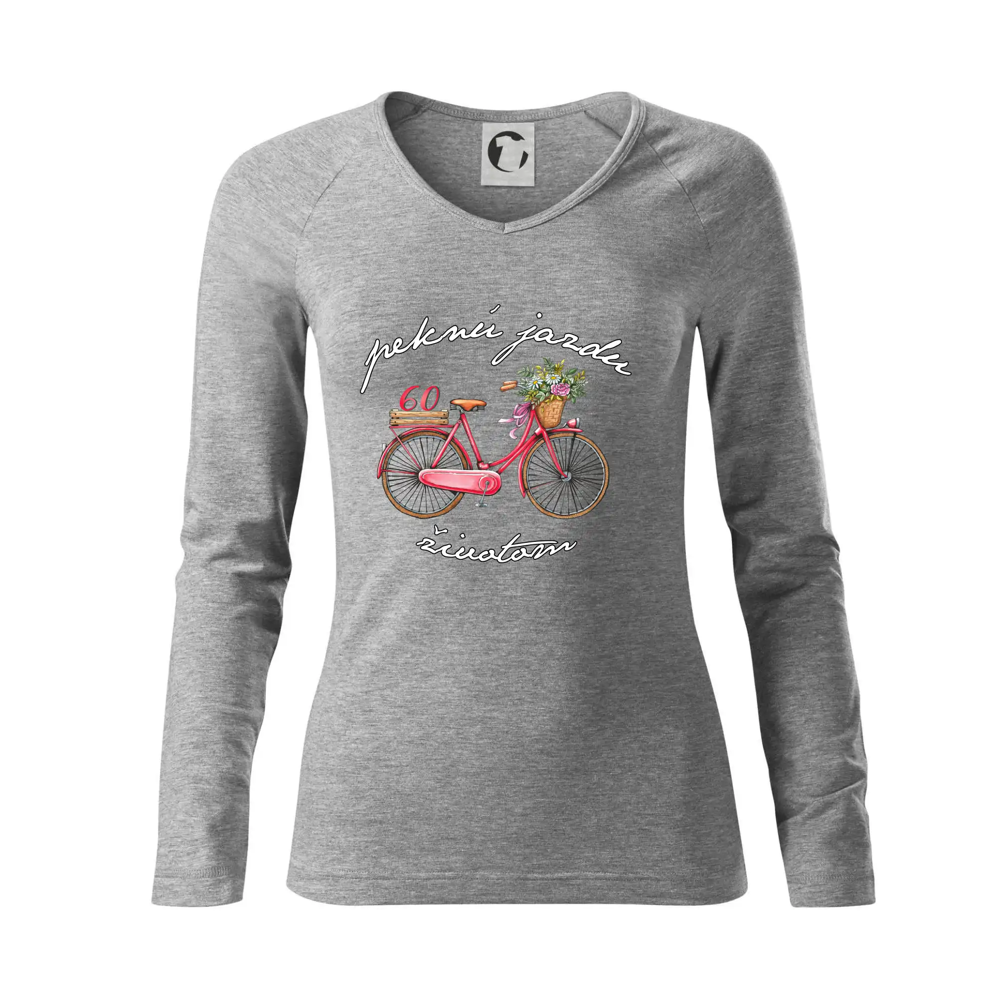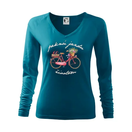 Narodeninové tričko pre babičku, ktorá oslavuje 60 rokov, s motom "peknú jazdu životom". Štýlový bicykel ako darček na 60. narodeniny pre ženu. Tričko pre babičku, ktorá oslavuje jubileum 60 rokov.