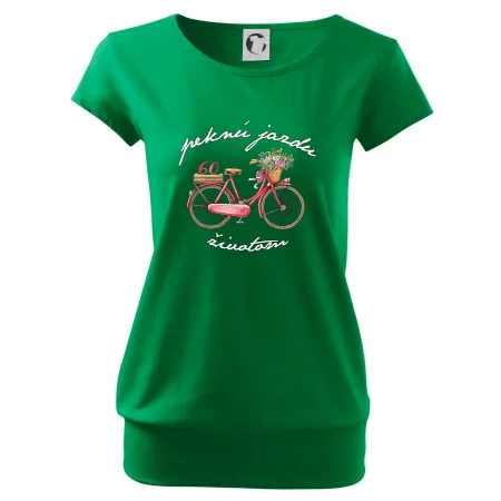 Narodeninové tričko pre babičku, ktorá oslavuje 60 rokov, s motom "peknú jazdu životom". Štýlový bicykel ako darček na 60. narodeniny pre ženu. Tričko pre babičku, ktorá oslavuje jubileum 60 rokov.