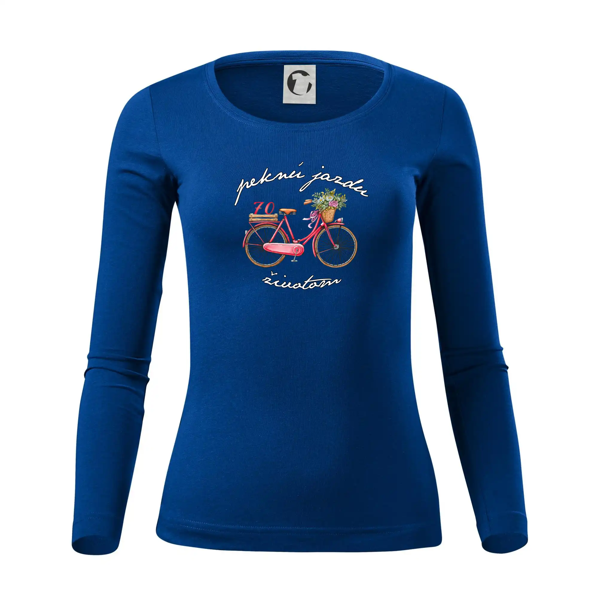 Narodeninové tričko pre babičku, ktorá oslavuje 70 rokov, s motom "peknú jazdu životom". Štýlový bicykel ako darček na 70. narodeniny pre ženu. Tričko pre babičku, ktorá oslavuje jubileum 70 rokov.