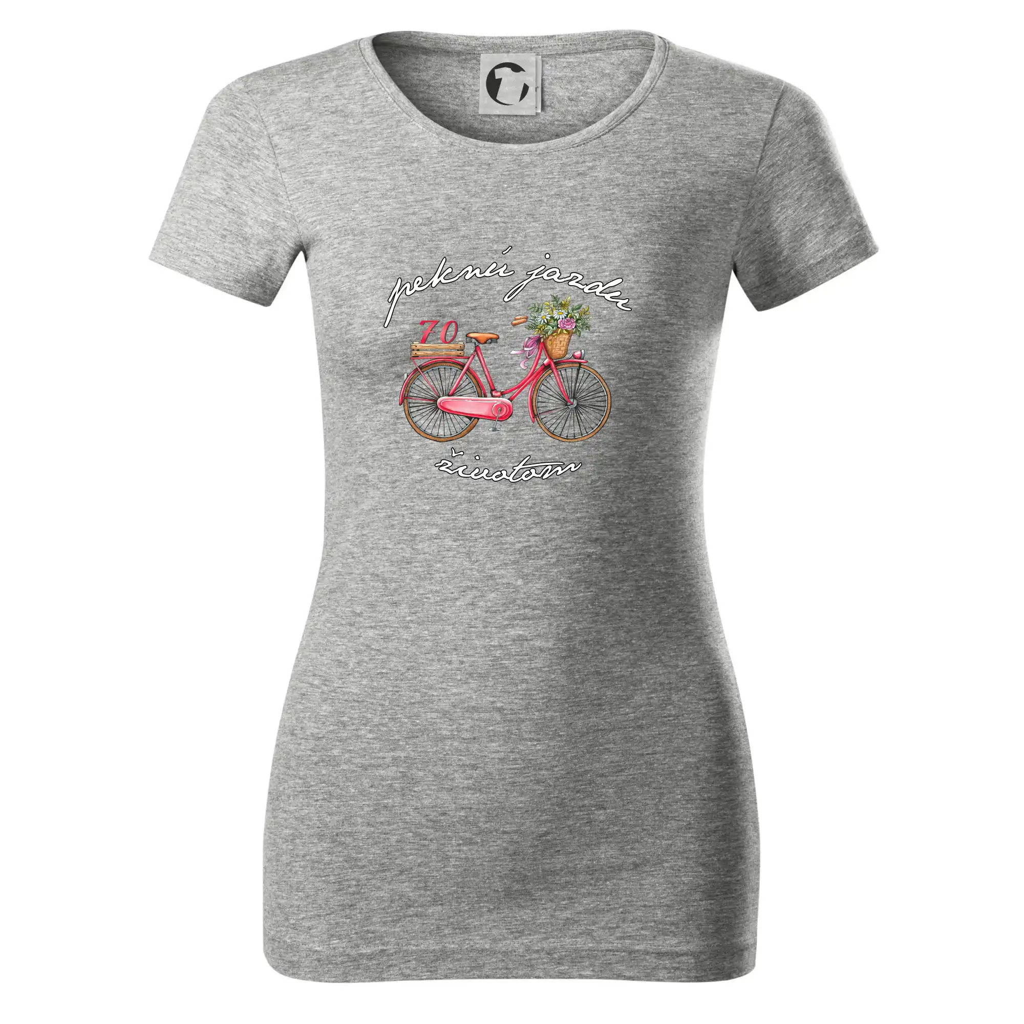 Narodeninové tričko pre babičku, ktorá oslavuje 70 rokov, s motom "peknú jazdu životom". Štýlový bicykel ako darček na 70. narodeniny pre ženu. Tričko pre babičku, ktorá oslavuje jubileum 70 rokov.