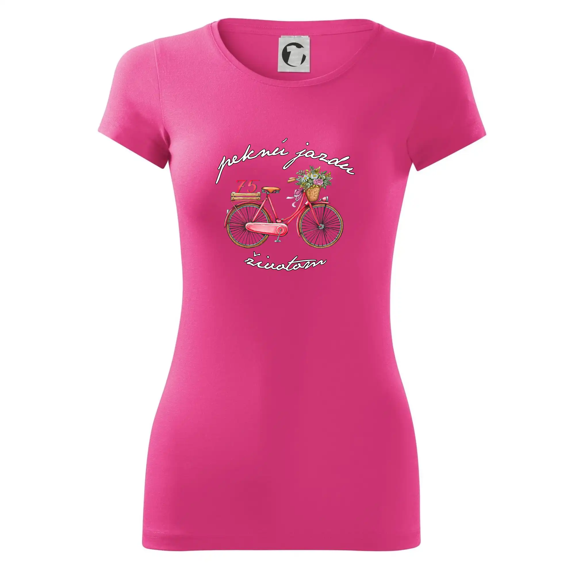 Narodeninové tričko pre babičku, ktorá oslavuje 75 rokov, s motom "peknú jazdu životom". Štýlový bicykel ako darček na 75. narodeniny pre ženu. Tričko pre babičku, ktorá oslavuje jubileum 75 rokov.