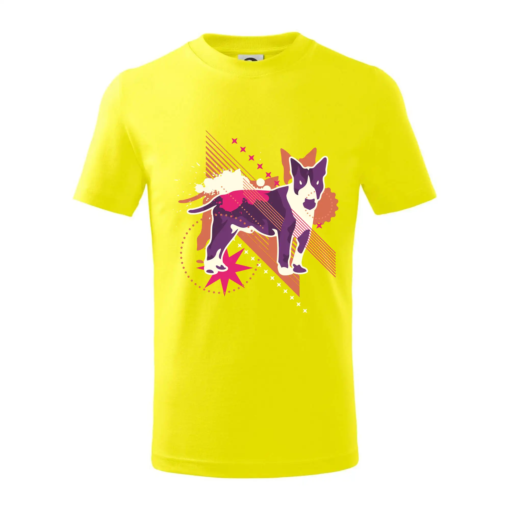 Detské tričko strednej gramáže s bočnými švami. Úzky priekrčník s prídavkom 5% elastanu. Vnútorná časť zadného priekrčníka začistená tkanou páskou. Spevnený ramenný šev.