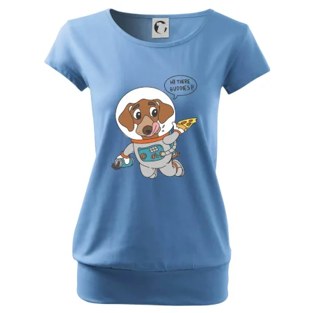 Trendové dámske tričko s veľmi krátkym rukávom, voľnejšieho strihu, v dolnom kraji všité do širokého lemu. Okrúhly priekrčník s úzkym lemom zo zhodného materiálu.