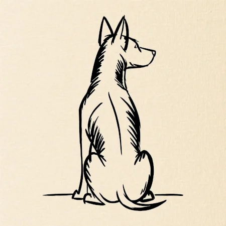 Pes kreslený zozadu