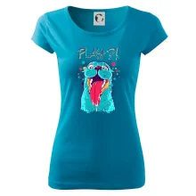Trendové dámske tričko s veľmi krátkym rukávom, voľnejšieho strihu, v dolnom kraji všité do širokého lemu. Okrúhly priekrčník s úzkym lemom zo zhodného materiálu.