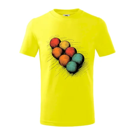 Detské tričko strednej gramáže s bočnými švami. Úzky priekrčník s prídavkom 5% elastanu. Vnútorná časť zadného priekrčníka začistená tkanou páskou. Spevnený ramenný šev.
