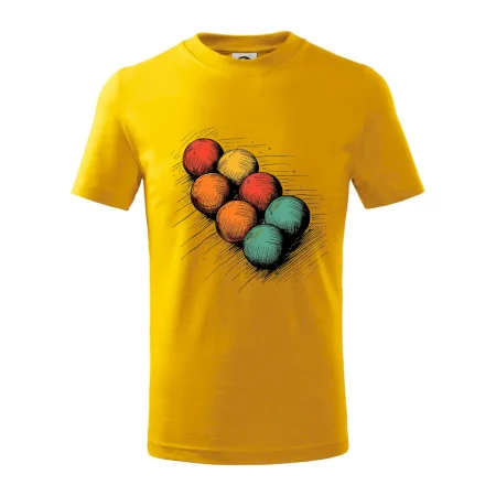 Detské tričko strednej gramáže s bočnými švami. Úzky priekrčník s prídavkom 5% elastanu. Vnútorná časť zadného priekrčníka začistená tkanou páskou. Spevnený ramenný šev.