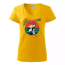 Dámske tričko s ľahko priliehavým strihom, ktorý pôsobí elegantne a skvele padne. Tento typ trička má kratšie rukávy a hlbší výstrih zakončený jemným lemovaním.