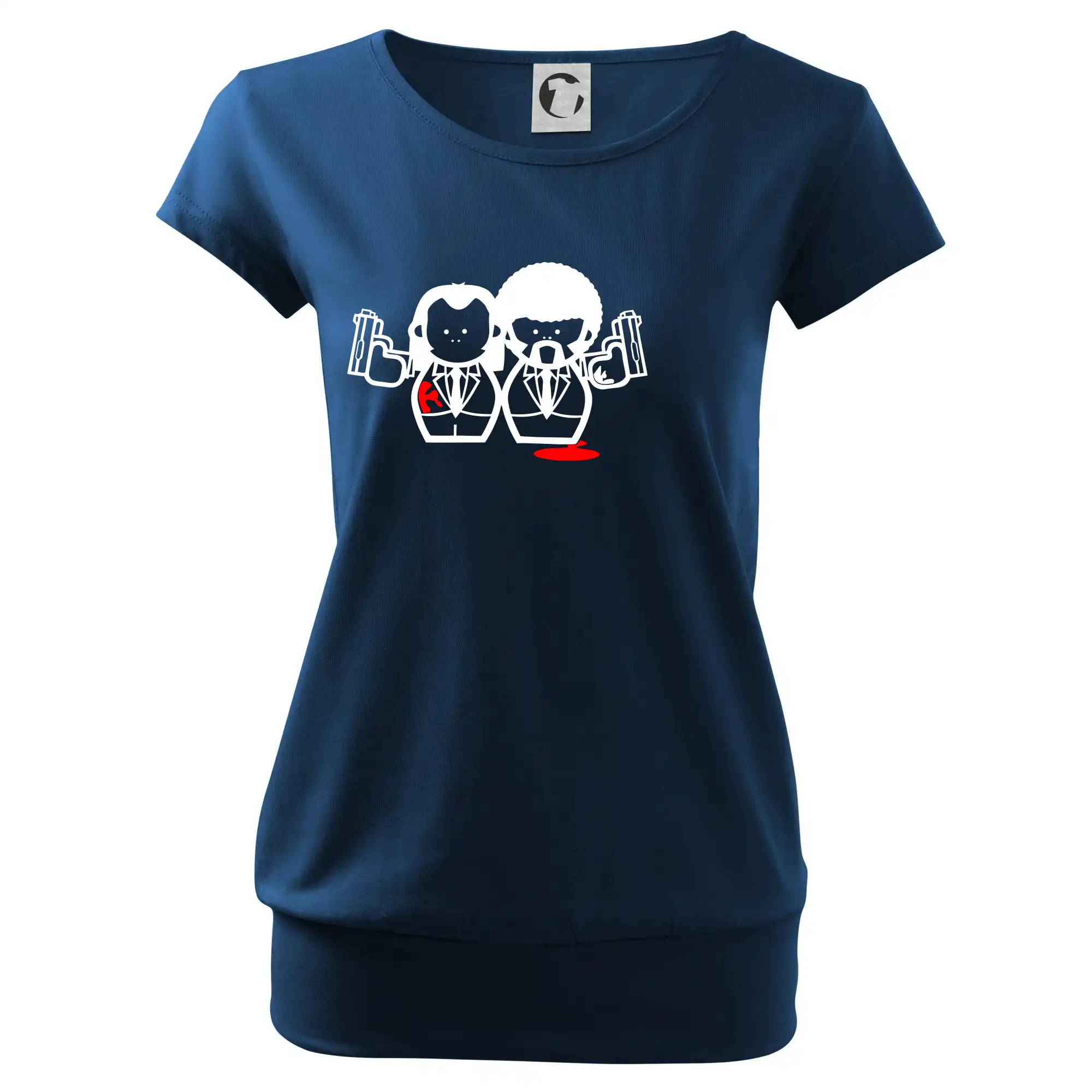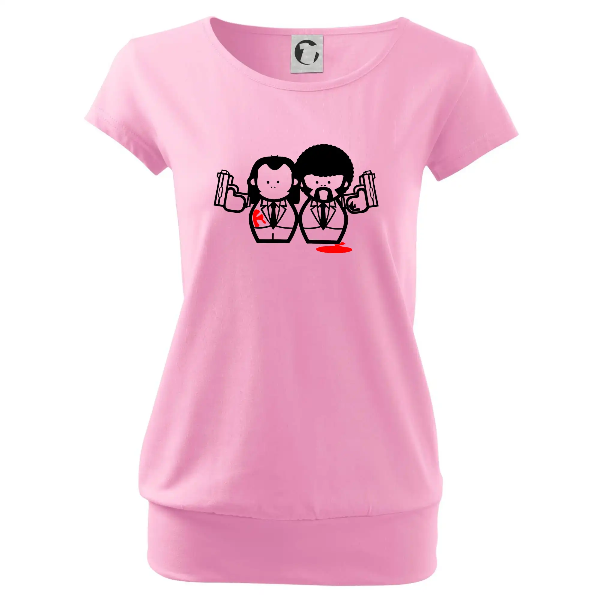 Trendové dámske tričko s veľmi krátkym rukávom, voľnejšieho strihu, v dolnom kraji všité do širokého lemu. Okrúhly priekrčník s úzkym lemom zo zhodného materiálu.