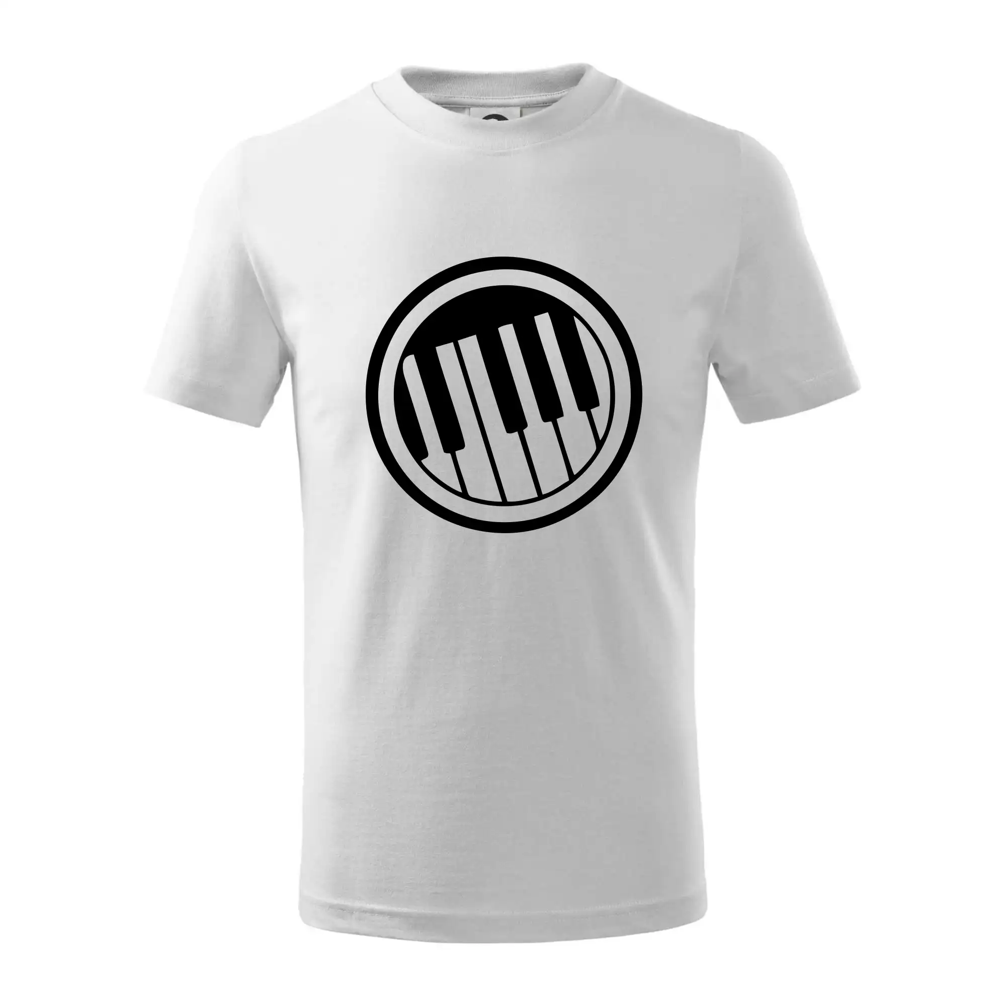 Detské tričko strednej gramáže s bočnými švami. Úzky priekrčník s prídavkom 5% elastanu. Vnútorná časť zadného priekrčníka začistená tkanou páskou. Spevnený ramenný šev.