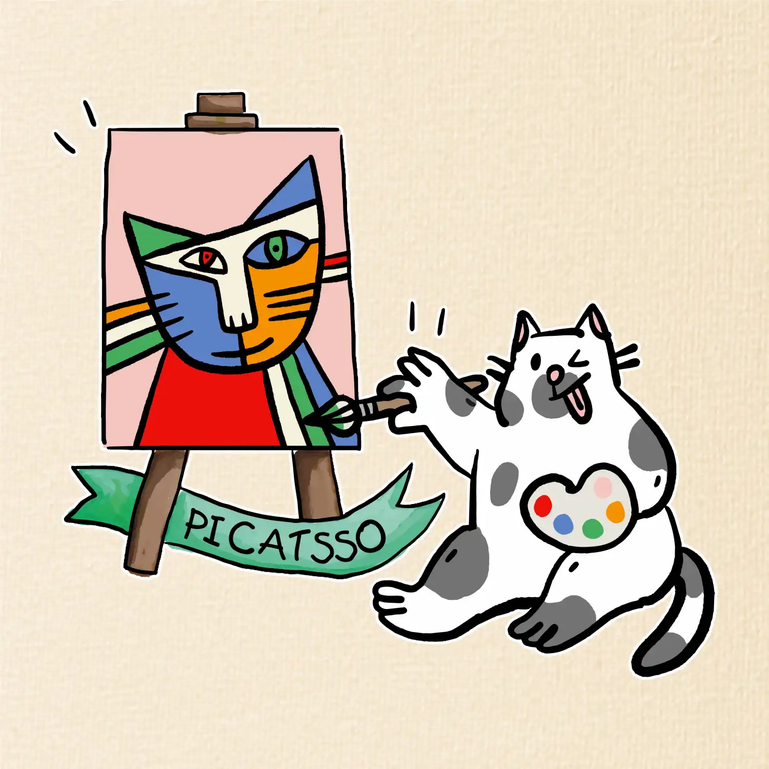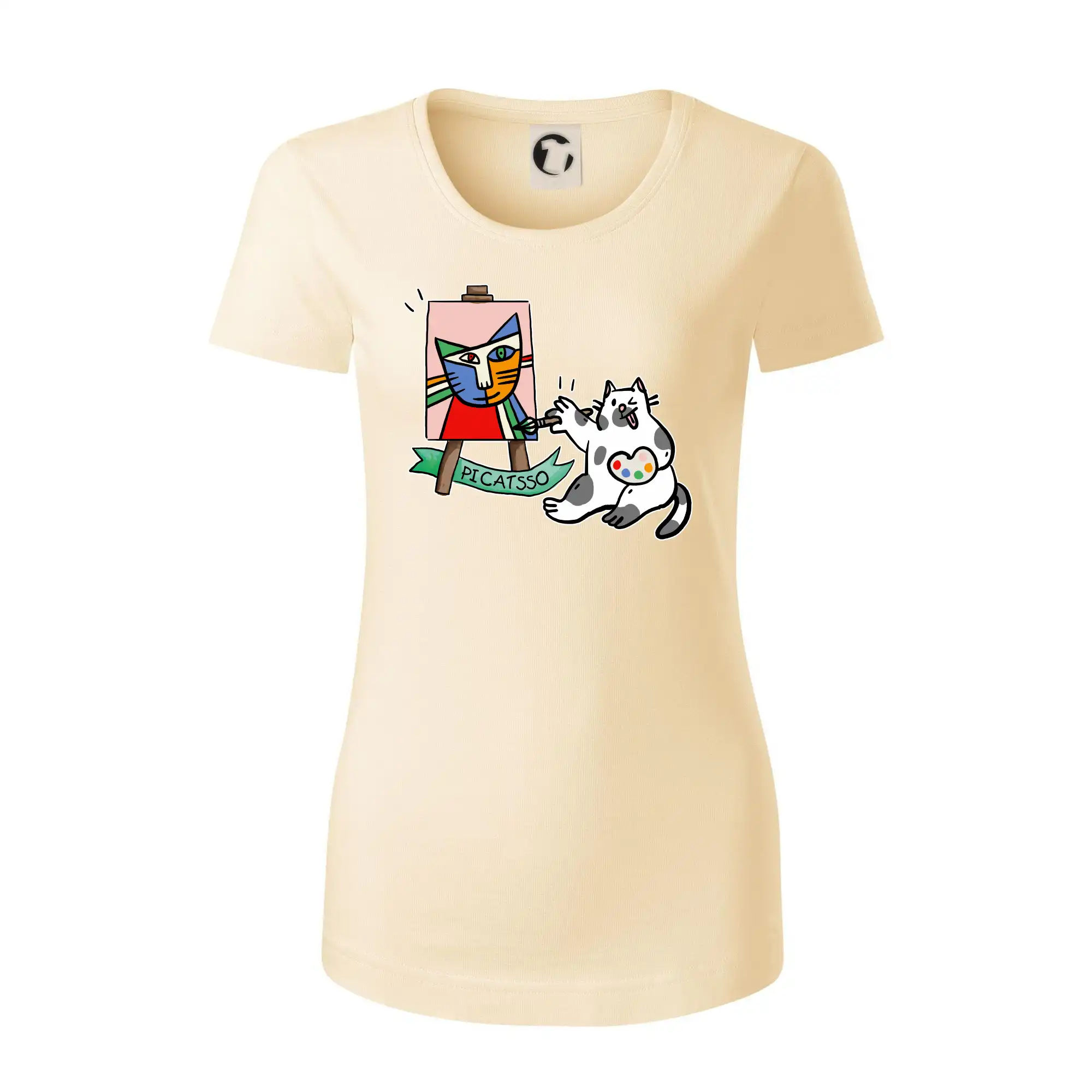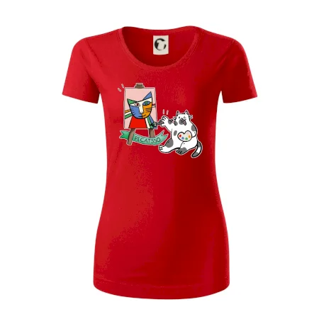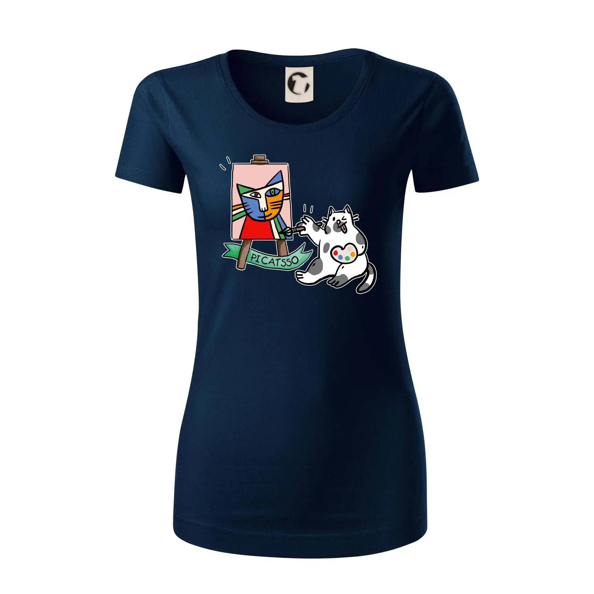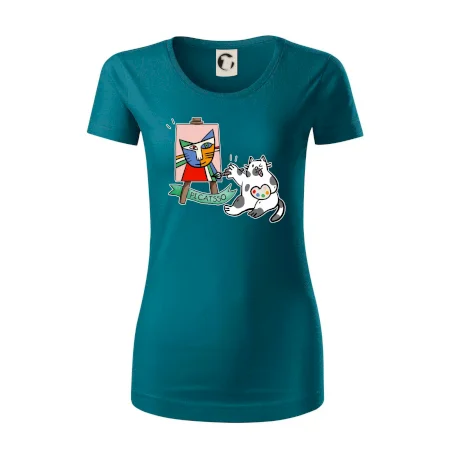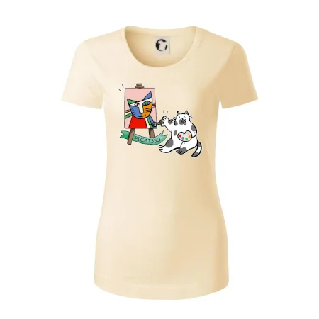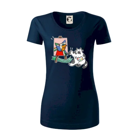 Tričko s kočkou která si věří, že je Pablo Picasso, vtipné triko s kočkou malířkou, která kreslí obraz. S trikem s kočkou nezkazíš žádnou srandu.