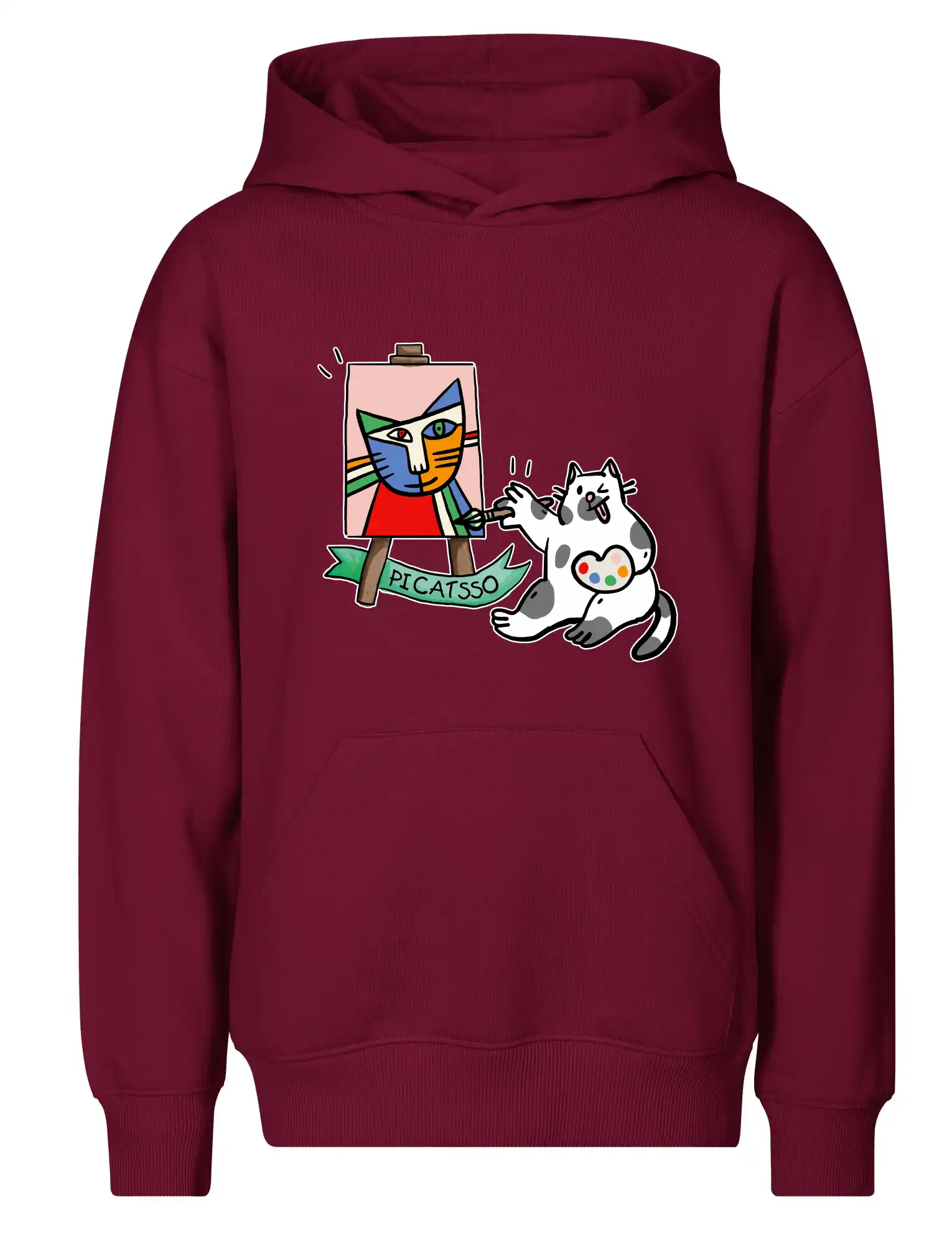 Tričko s kočkou která si věří, že je Pablo Picasso, vtipné triko s kočkou malířkou, která kreslí obraz. S trikem s kočkou nezkazíš žádnou srandu.