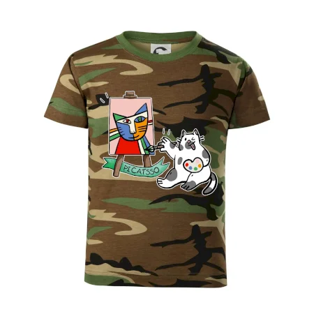 Tričko s kočkou která si věří, že je Pablo Picasso, vtipné triko s kočkou malířkou, která kreslí obraz. S trikem s kočkou nezkazíš žádnou srandu.