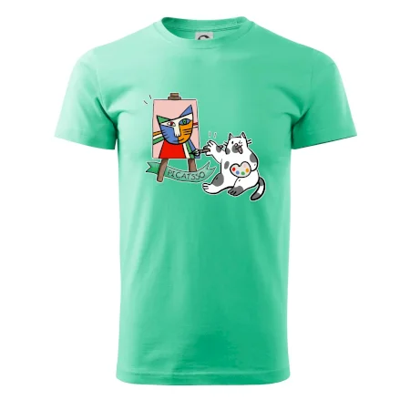 Tričko s kočkou která si věří, že je Pablo Picasso, vtipné triko s kočkou malířkou, která kreslí obraz. S trikem s kočkou nezkazíš žádnou srandu.