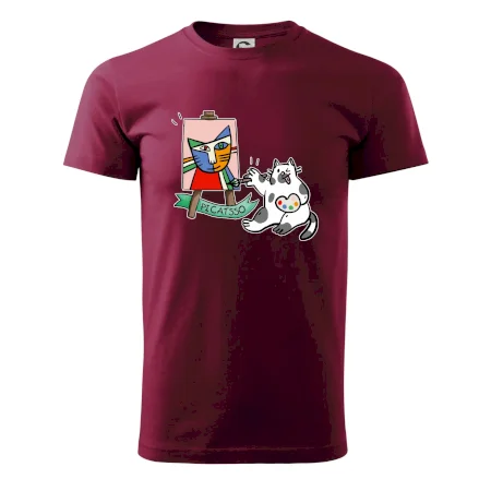 Tričko s kočkou která si věří, že je Pablo Picasso, vtipné triko s kočkou malířkou, která kreslí obraz. S trikem s kočkou nezkazíš žádnou srandu.