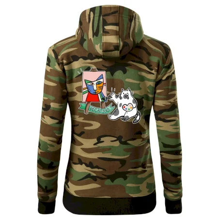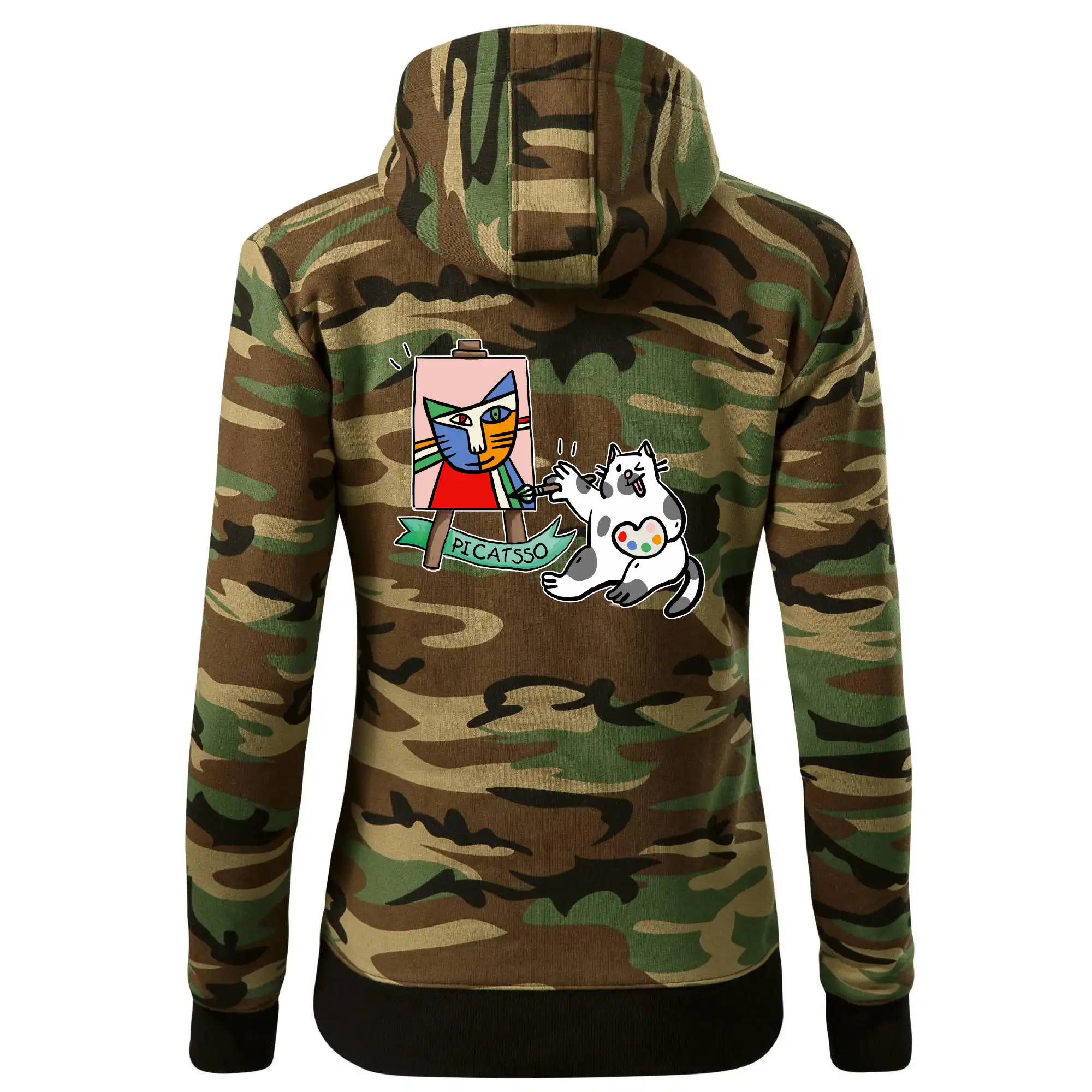 Tričko s kočkou která si věří, že je Pablo Picasso, vtipné triko s kočkou malířkou, která kreslí obraz. S trikem s kočkou nezkazíš žádnou srandu.