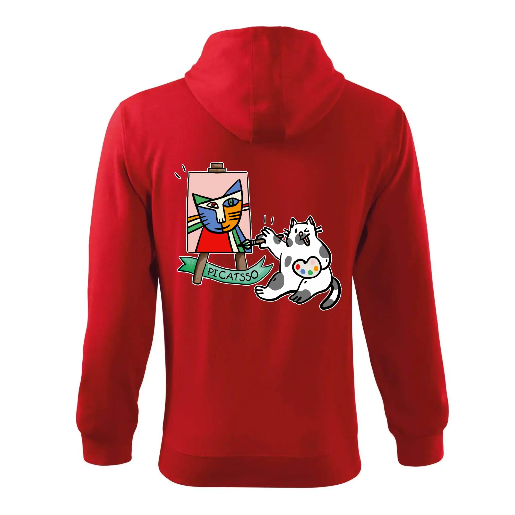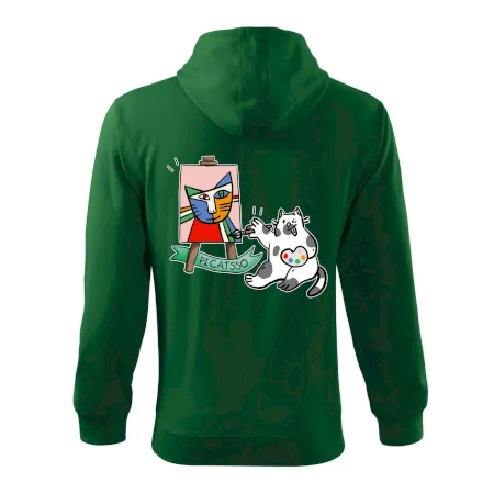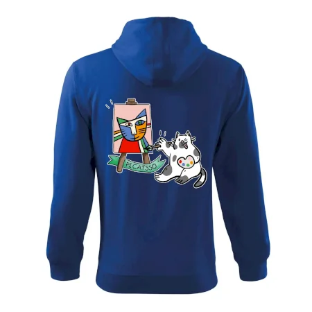 Tričko s kočkou která si věří, že je Pablo Picasso, vtipné triko s kočkou malířkou, která kreslí obraz. S trikem s kočkou nezkazíš žádnou srandu.