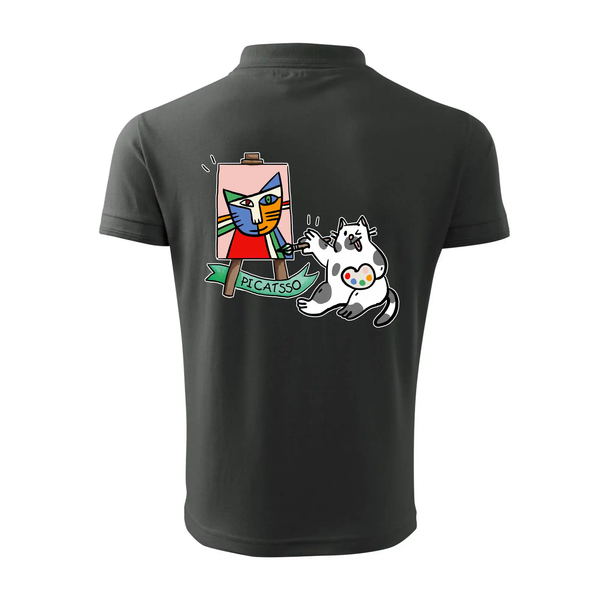 Tričko s kočkou která si věří, že je Pablo Picasso, vtipné triko s kočkou malířkou, která kreslí obraz. S trikem s kočkou nezkazíš žádnou srandu.