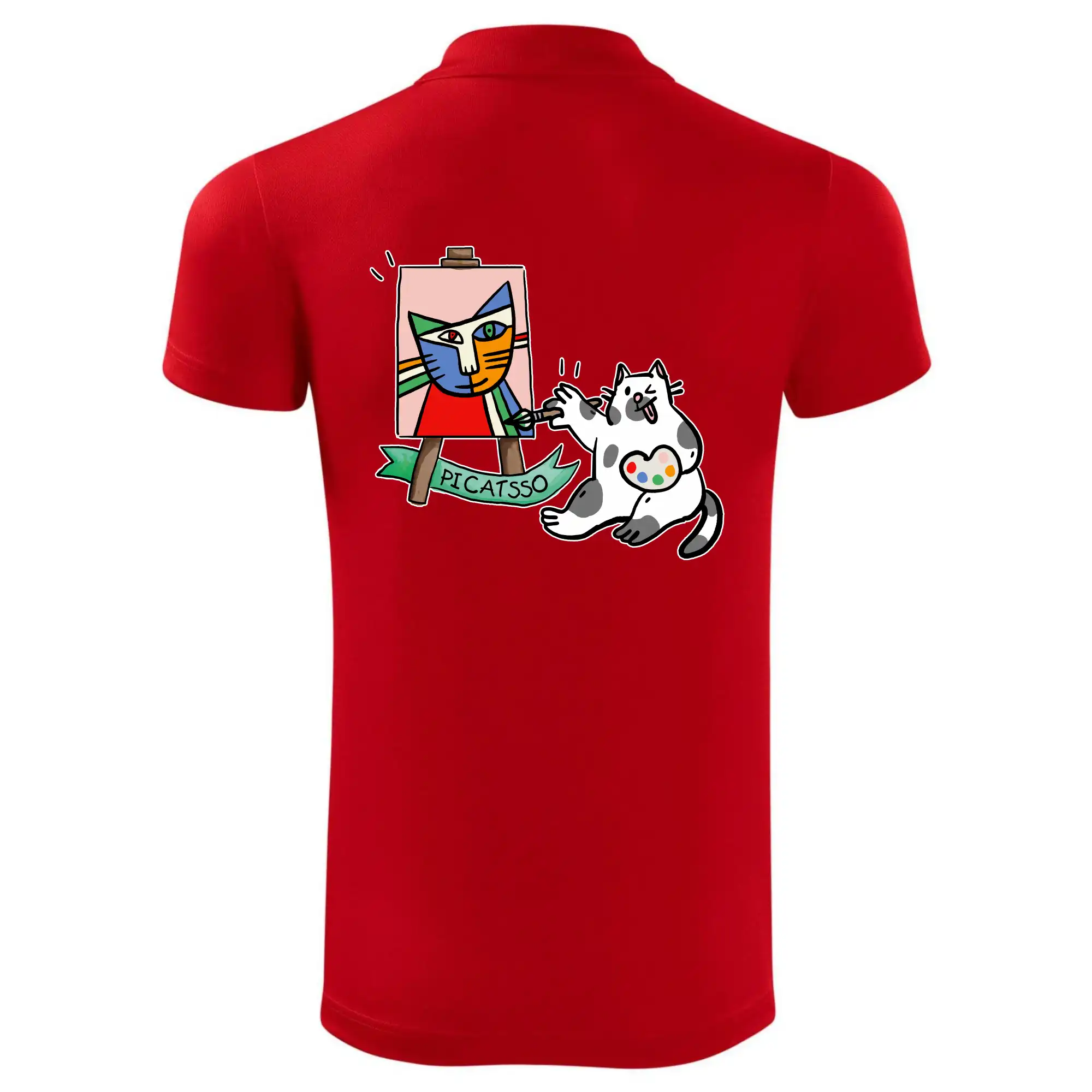Tričko s kočkou která si věří, že je Pablo Picasso, vtipné triko s kočkou malířkou, která kreslí obraz. S trikem s kočkou nezkazíš žádnou srandu.