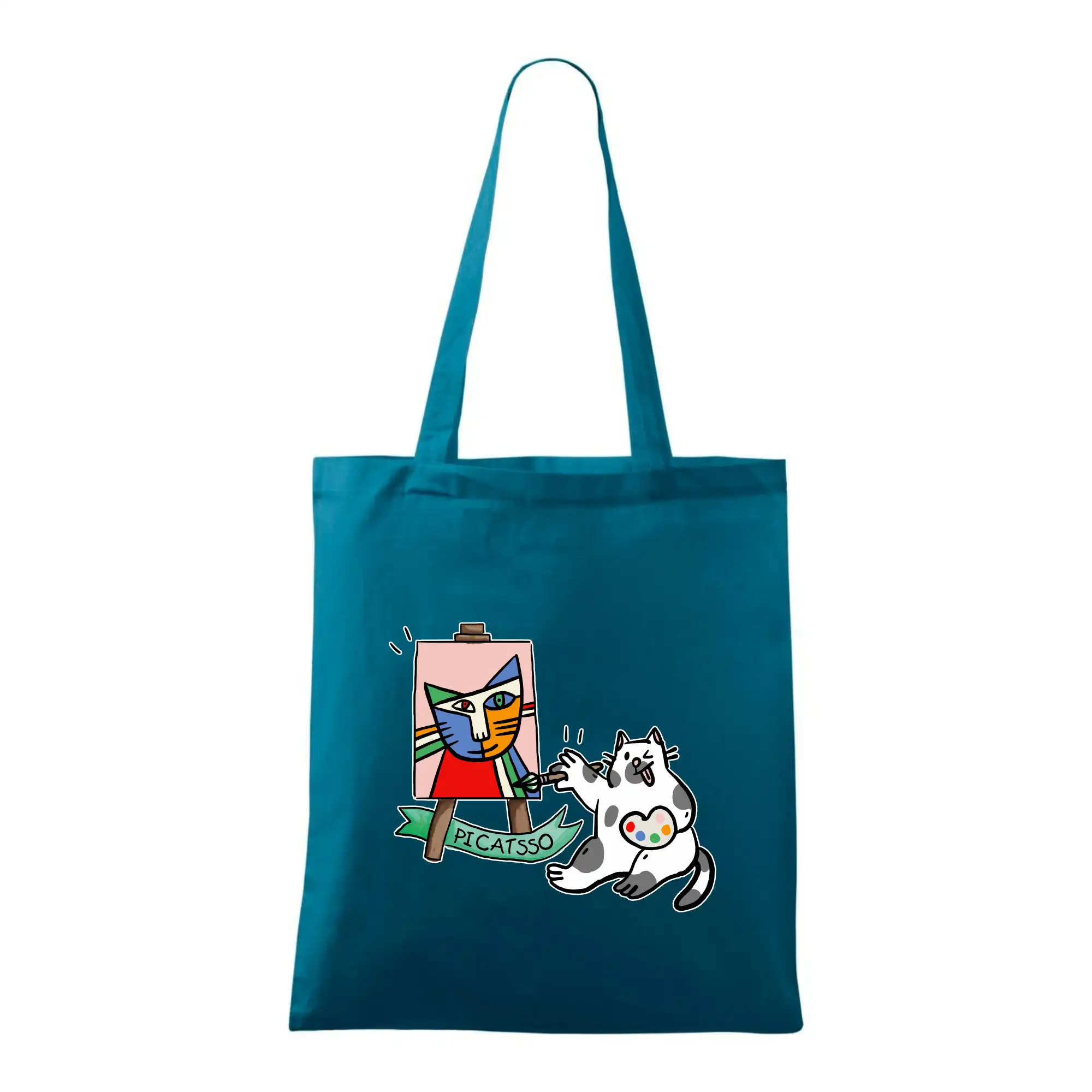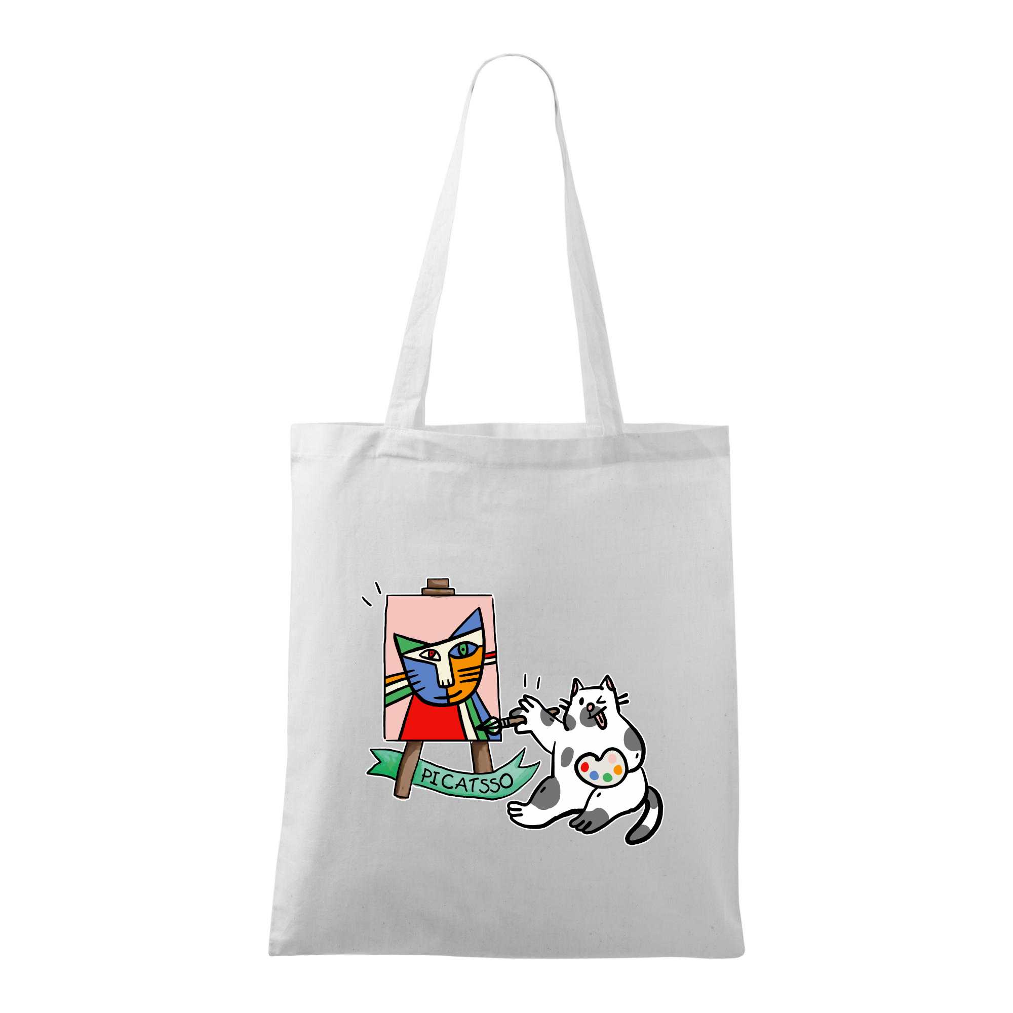 Tričko s kočkou která si věří, že je Pablo Picasso, vtipné triko s kočkou malířkou, která kreslí obraz. S trikem s kočkou nezkazíš žádnou srandu.