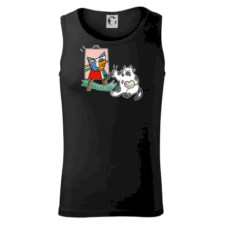Tričko s kočkou která si věří, že je Pablo Picasso, vtipné triko s kočkou malířkou, která kreslí obraz. S trikem s kočkou nezkazíš žádnou srandu.