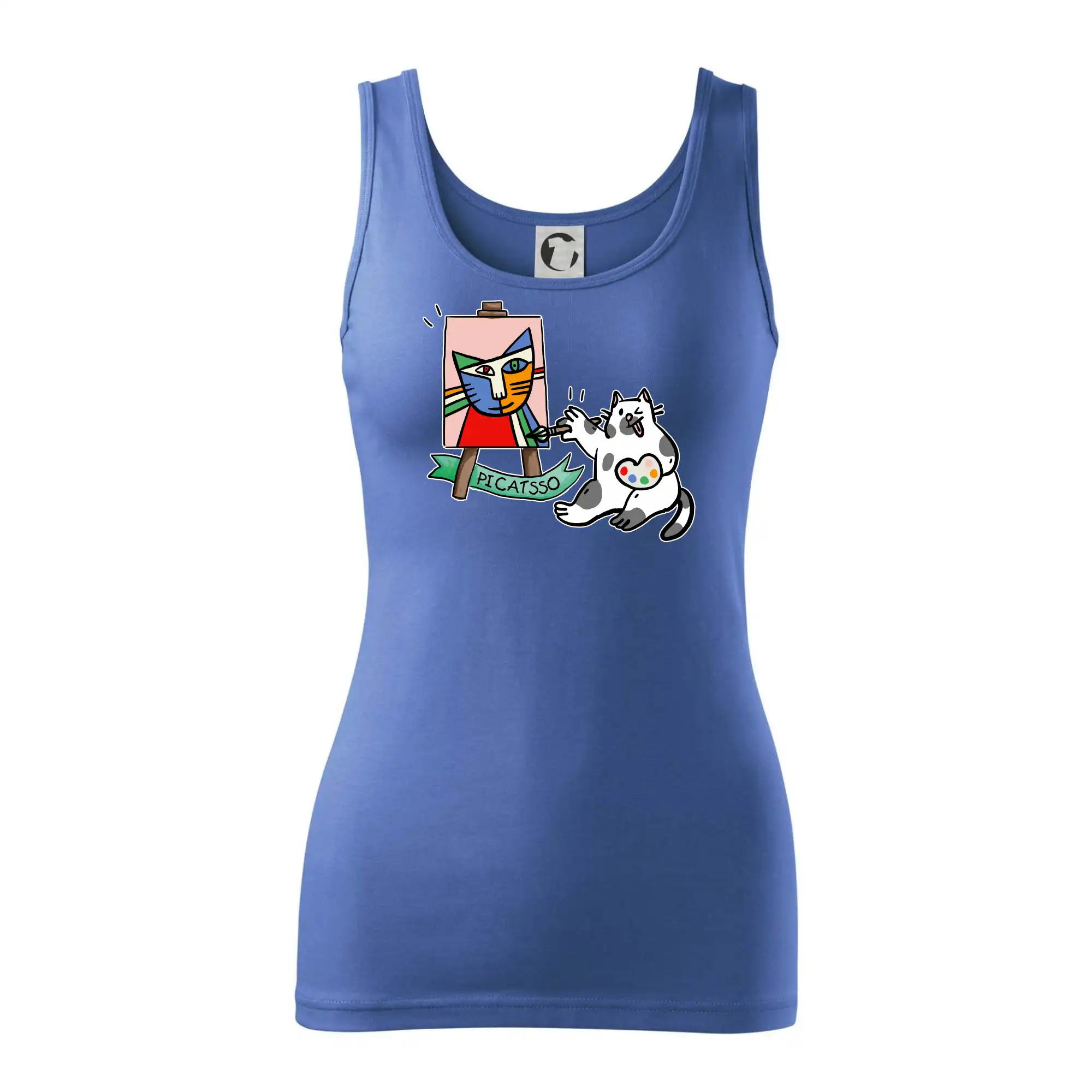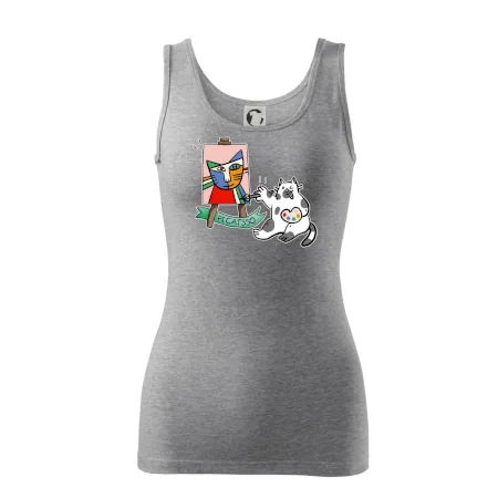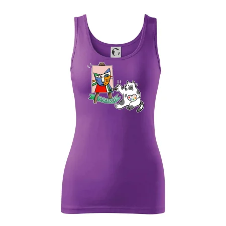 Tričko s kočkou která si věří, že je Pablo Picasso, vtipné triko s kočkou malířkou, která kreslí obraz. S trikem s kočkou nezkazíš žádnou srandu.