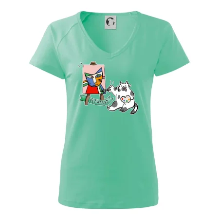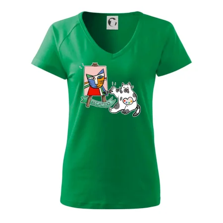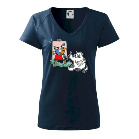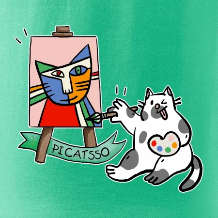 Tričko s kočkou která si věří, že je Pablo Picasso, vtipné triko s kočkou malířkou, která kreslí obraz. S trikem s kočkou nezkazíš žádnou srandu.