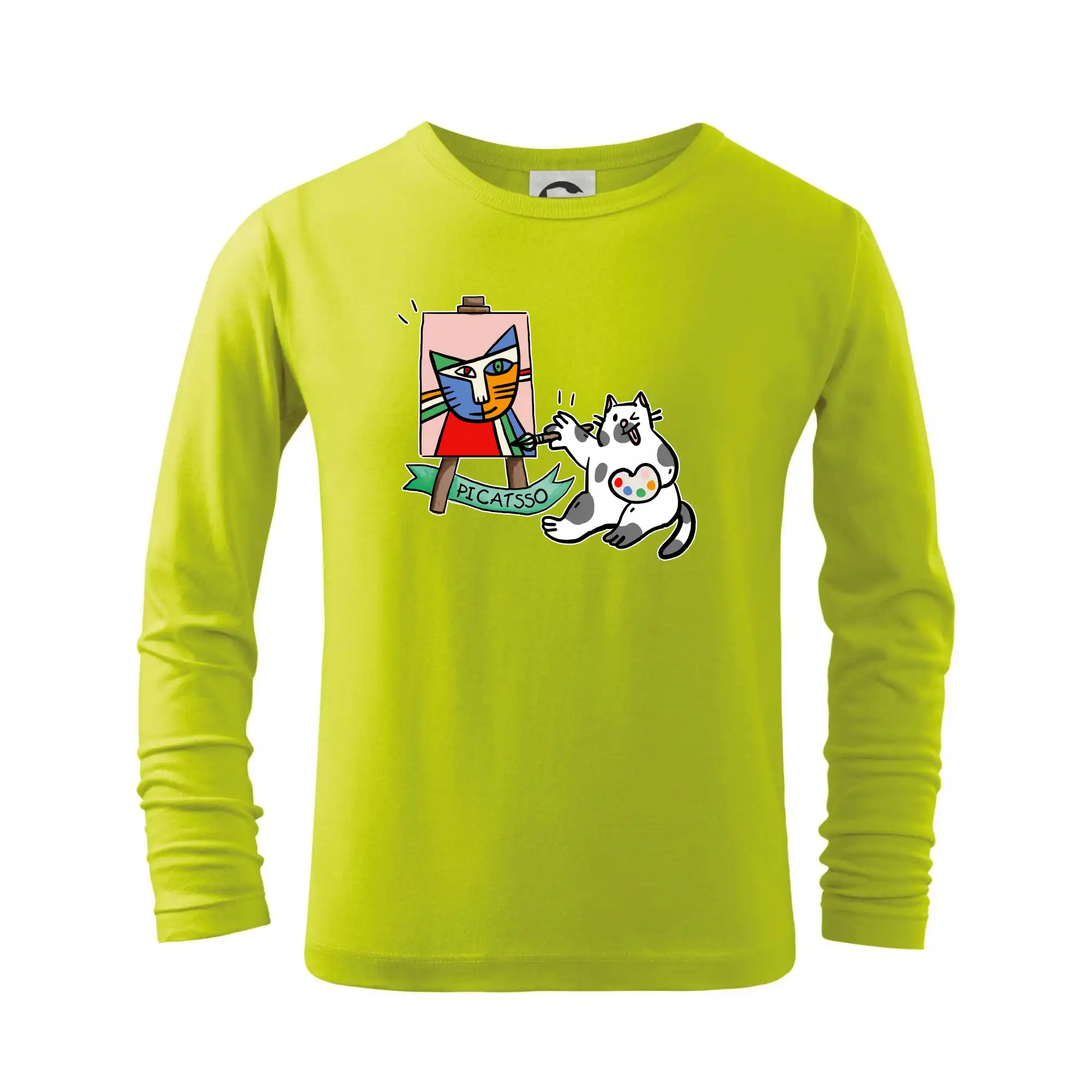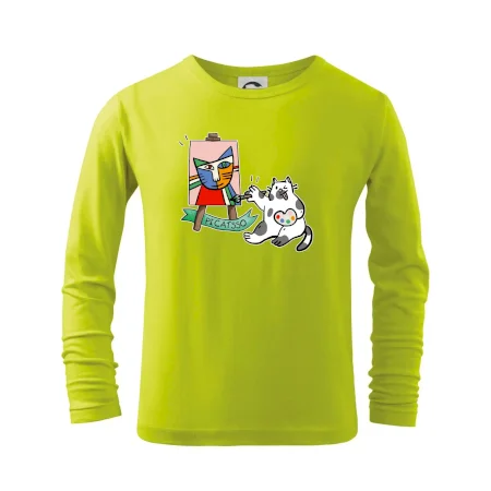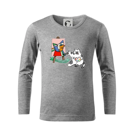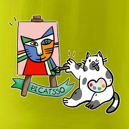 Tričko s kočkou která si věří, že je Pablo Picasso, vtipné triko s kočkou malířkou, která kreslí obraz. S trikem s kočkou nezkazíš žádnou srandu.