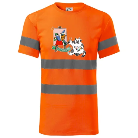 Tričko s kočkou která si věří, že je Pablo Picasso, vtipné triko s kočkou malířkou, která kreslí obraz. S trikem s kočkou nezkazíš žádnou srandu.