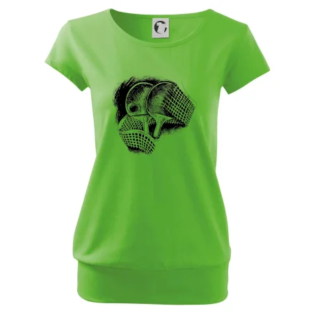 Trendové dámske tričko s veľmi krátkym rukávom, voľnejšieho strihu, v dolnom kraji všité do širokého lemu. Okrúhly priekrčník s úzkym lemom zo zhodného materiálu.