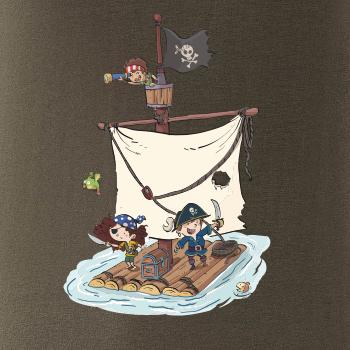 Vydaj sa na plavbu pre pirátsky poklad! Pirátske tričko pre pravého piráta. Na pirátskom tričku je pirátska posádka, ktorá ukoristila truhlu s pokladom. Pirátska vlajka nesmie na lodi chýbať! Tričko je vhodný darček pre vodáka.