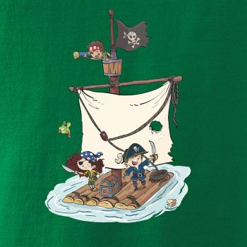 Vydaj sa na plavbu pre pirátsky poklad! Pirátske tričko pre pravého piráta. Na pirátskom tričku je pirátska posádka, ktorá ukoristila truhlu s pokladom. Pirátska vlajka nesmie na lodi chýbať! Tričko je vhodný darček pre vodáka.