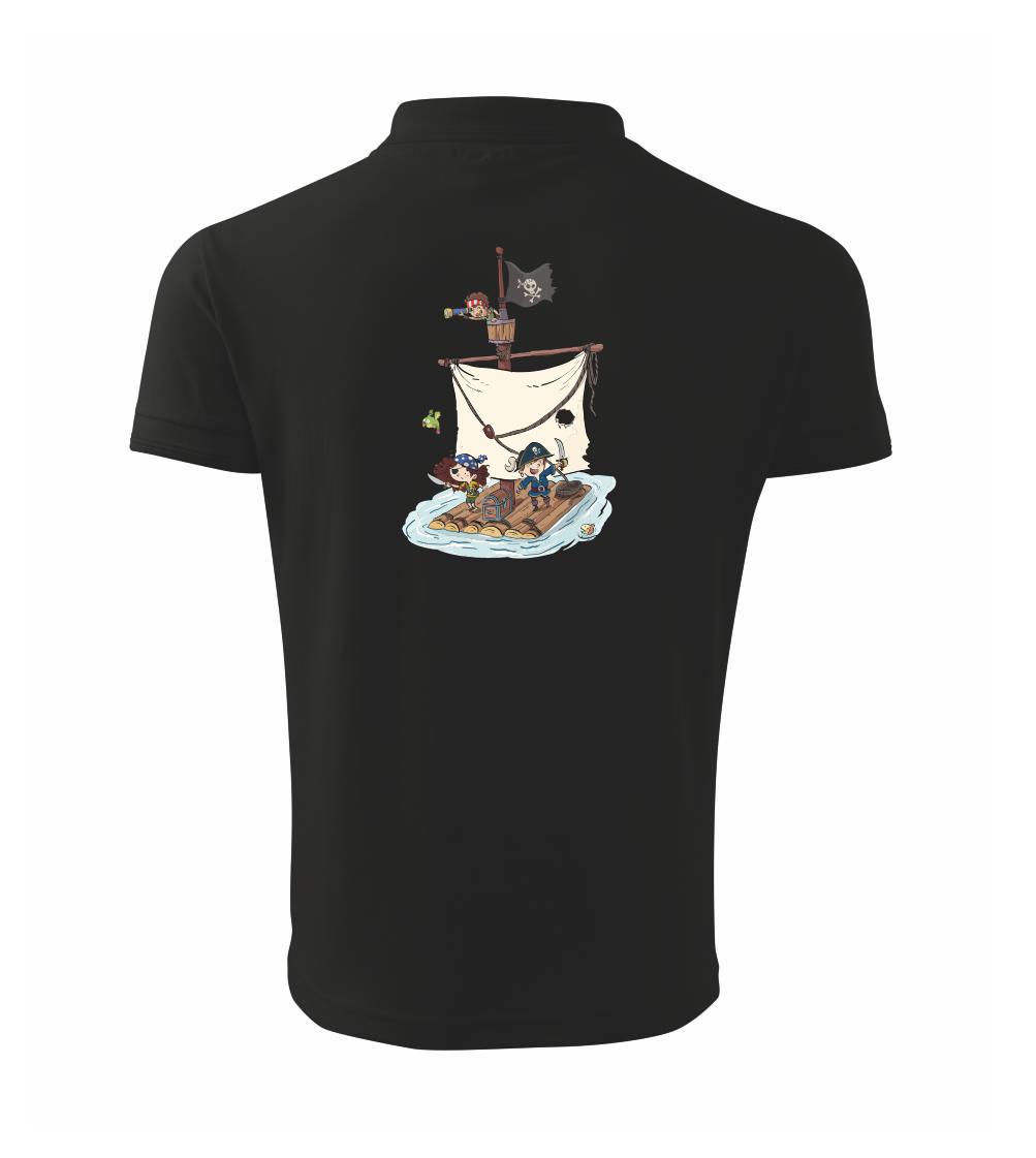 Vydaj sa na plavbu pre pirátsky poklad! Pirátske tričko pre pravého piráta. Na pirátskom tričku je pirátska posádka, ktorá ukoristila truhlu s pokladom. Pirátska vlajka nesmie na lodi chýbať! Tričko je vhodný darček pre vodáka.