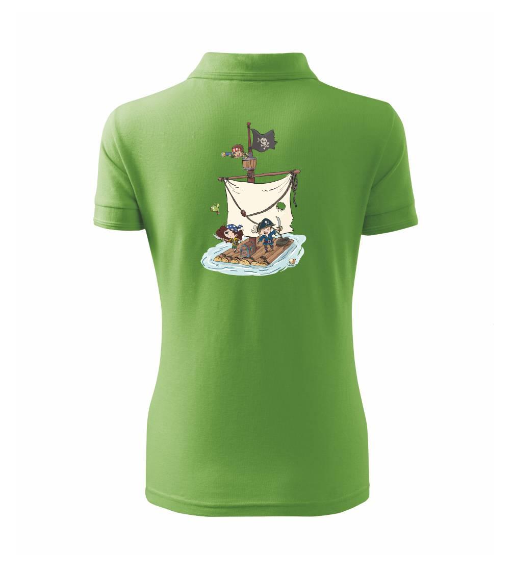 Vydaj sa na plavbu pre pirátsky poklad! Pirátske tričko pre pravého piráta. Na pirátskom tričku je pirátska posádka, ktorá ukoristila truhlu s pokladom. Pirátska vlajka nesmie na lodi chýbať! Tričko je vhodný darček pre vodáka.