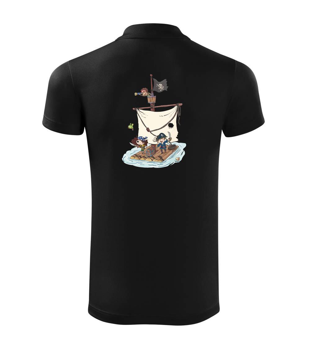 Vydaj sa na plavbu pre pirátsky poklad! Pirátske tričko pre pravého piráta. Na pirátskom tričku je pirátska posádka, ktorá ukoristila truhlu s pokladom. Pirátska vlajka nesmie na lodi chýbať! Tričko je vhodný darček pre vodáka.