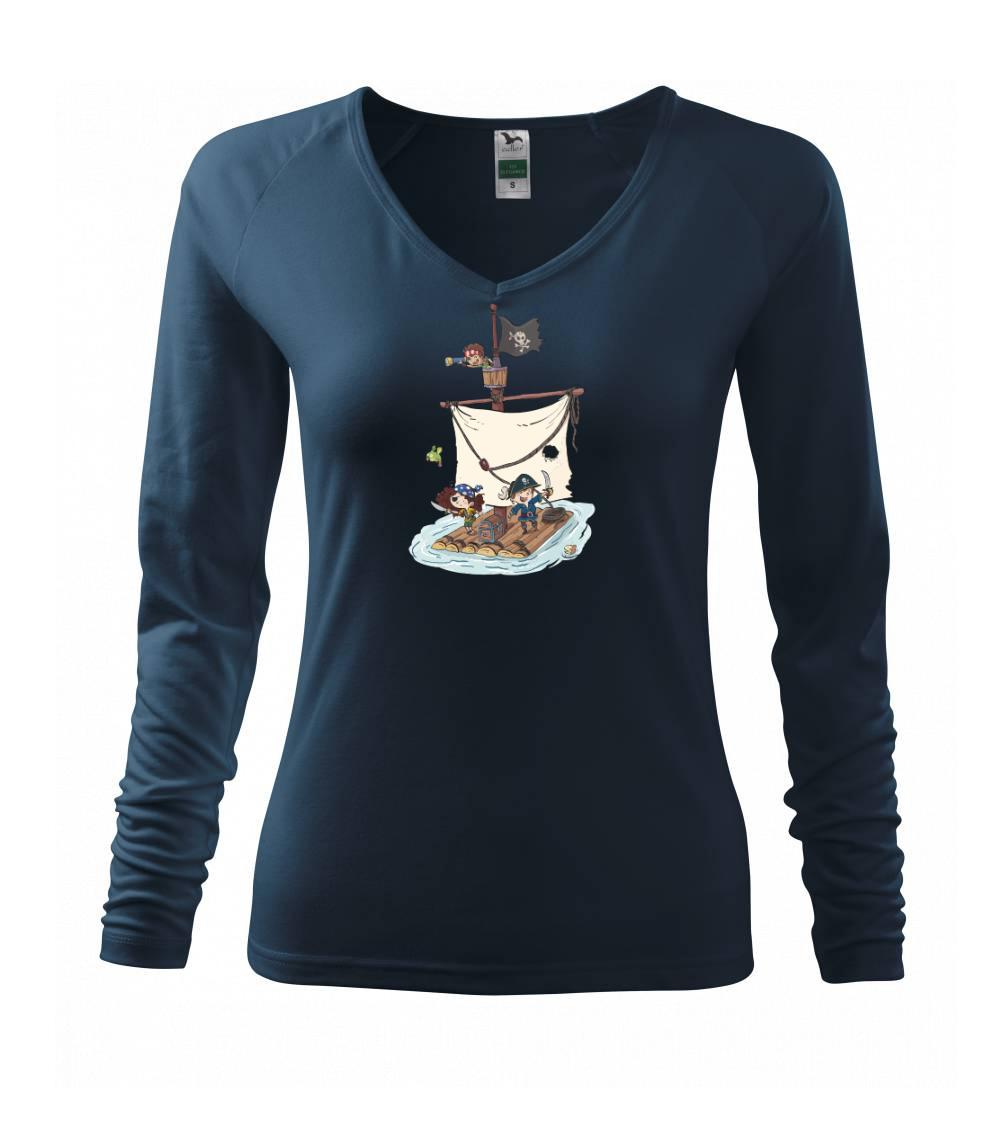 Vydaj sa na plavbu pre pirátsky poklad! Pirátske tričko pre pravého piráta. Na pirátskom tričku je pirátska posádka, ktorá ukoristila truhlu s pokladom. Pirátska vlajka nesmie na lodi chýbať! Tričko je vhodný darček pre vodáka.