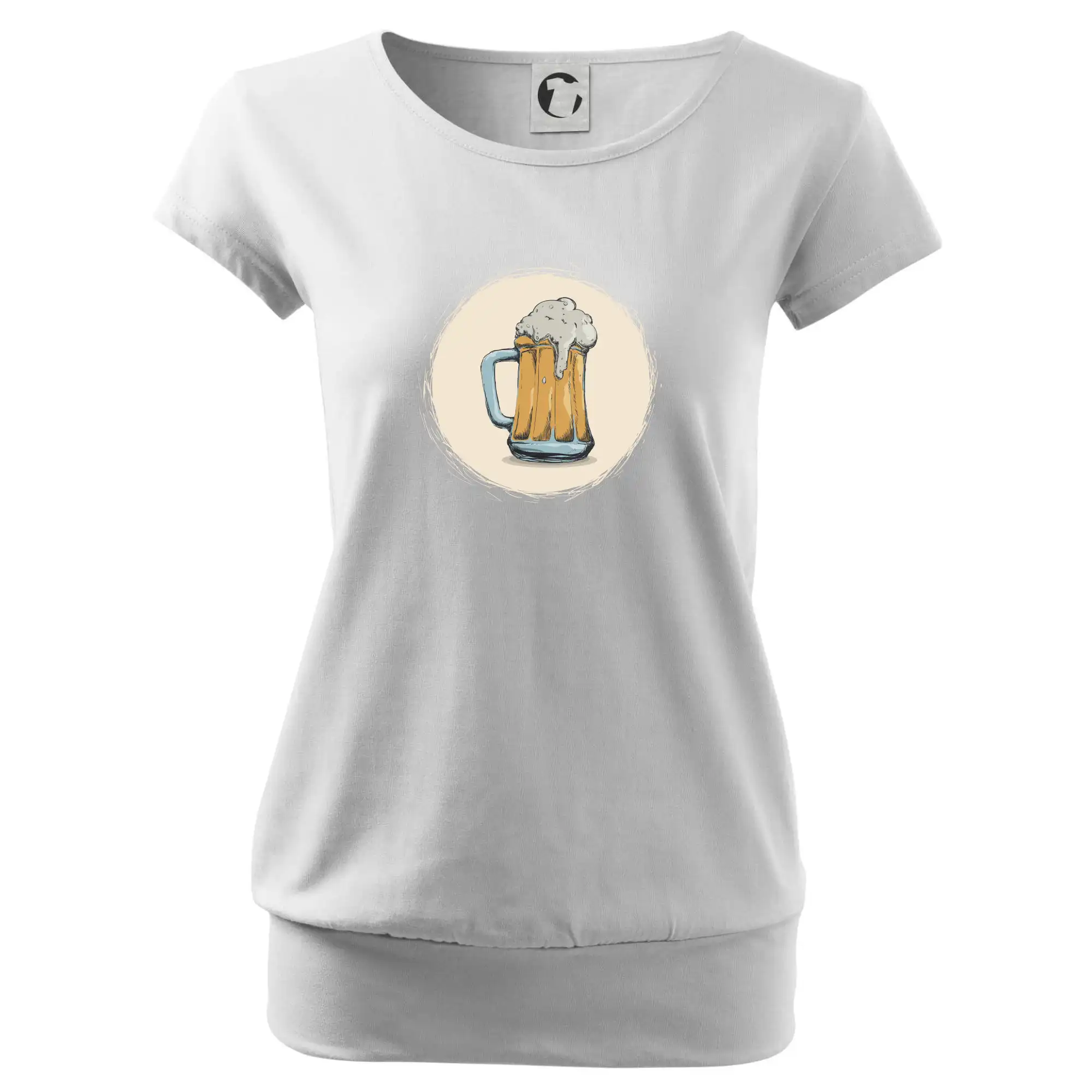 Trendové dámske tričko s veľmi krátkym rukávom, voľnejšieho strihu, v dolnom kraji všité do širokého lemu. Okrúhly priekrčník s úzkym lemom zo zhodného materiálu.