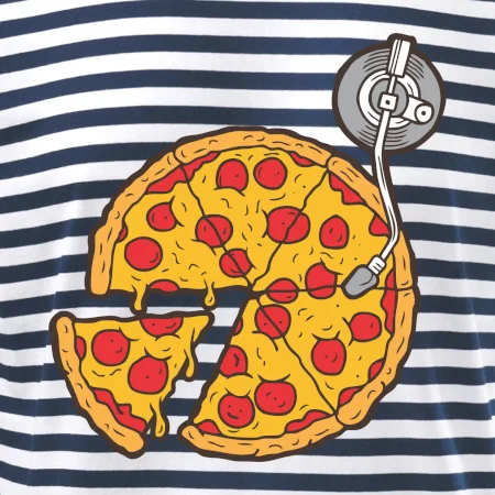 Tričko pre dídžeja, ktorý miluje pizzu a hudba je jeho život. Na tričku je totiž pizza miesto dosky na mixážnom pulte. Darček pre dídžeja Ťa poteší ak si DJ celým srdcom. Gramofónová doska zmizla a obsadila ju gramofónová pizza.