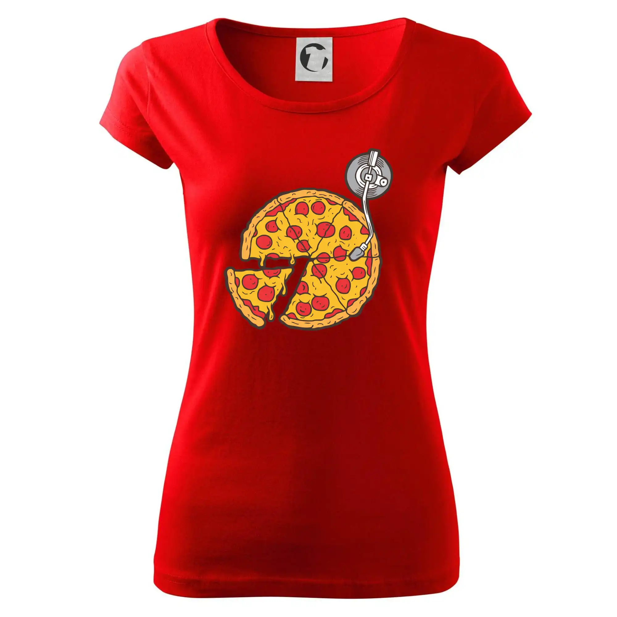 Tričko pre dídžeja, ktorý miluje pizzu a hudba je jeho život. Na tričku je totiž pizza miesto dosky na mixážnom pulte. Darček pre dídžeja Ťa poteší ak si DJ celým srdcom. Gramofónová doska zmizla a obsadila ju gramofónová pizza.