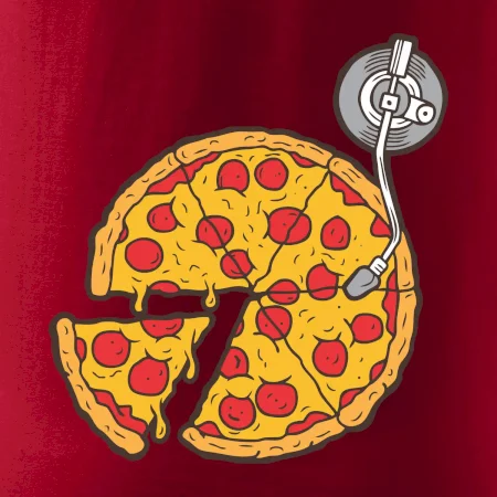Tričko pre dídžeja, ktorý miluje pizzu a hudba je jeho život. Na tričku je totiž pizza miesto dosky na mixážnom pulte. Darček pre dídžeja Ťa poteší ak si DJ celým srdcom. Gramofónová doska zmizla a obsadila ju gramofónová pizza.