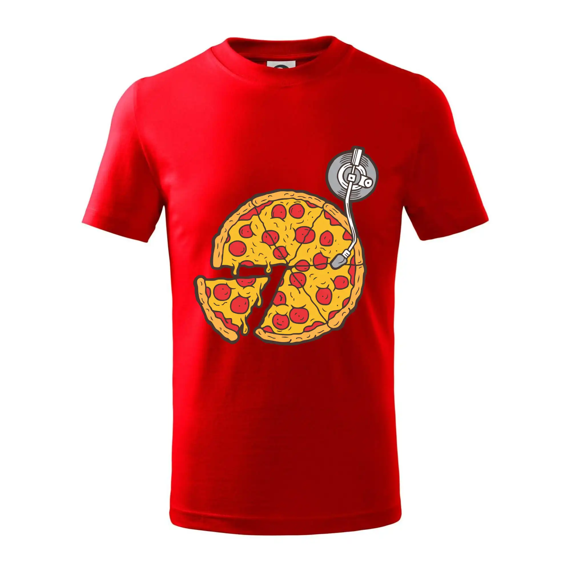 Tričko pre dídžeja, ktorý miluje pizzu a hudba je jeho život. Na tričku je totiž pizza miesto dosky na mixážnom pulte. Darček pre dídžeja Ťa poteší ak si DJ celým srdcom. Gramofónová doska zmizla a obsadila ju gramofónová pizza.