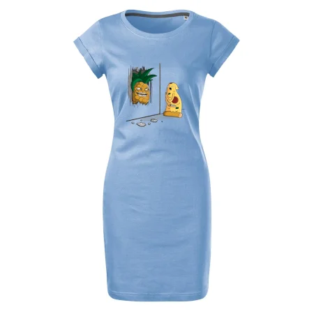 Tričkošaty MALFINI Freedom 178 sú ideálne pre ženy, ktoré hľadajú pohodlný a vzdušný kúsok na letné dni alebo voľnočasové aktivity. Voľný, ľahko tvarovaný strih s bočnými švami ponúka maximálne pohodlie a voľnosť pohybu. Dĺžka nad kolená a hlbší okrúhly výstrih dodávajú šatám svieži vzhľad, zatiaľ čo ohrnuté rukávy pripevnené šitím v štyroch bodoch pridávajú moderný detail. Kvalitný bavlnený materiál je mäkký a priedušný, s úzkym lemom výstrihu obsahujúcim elastan pre jednoduché obliekanie.