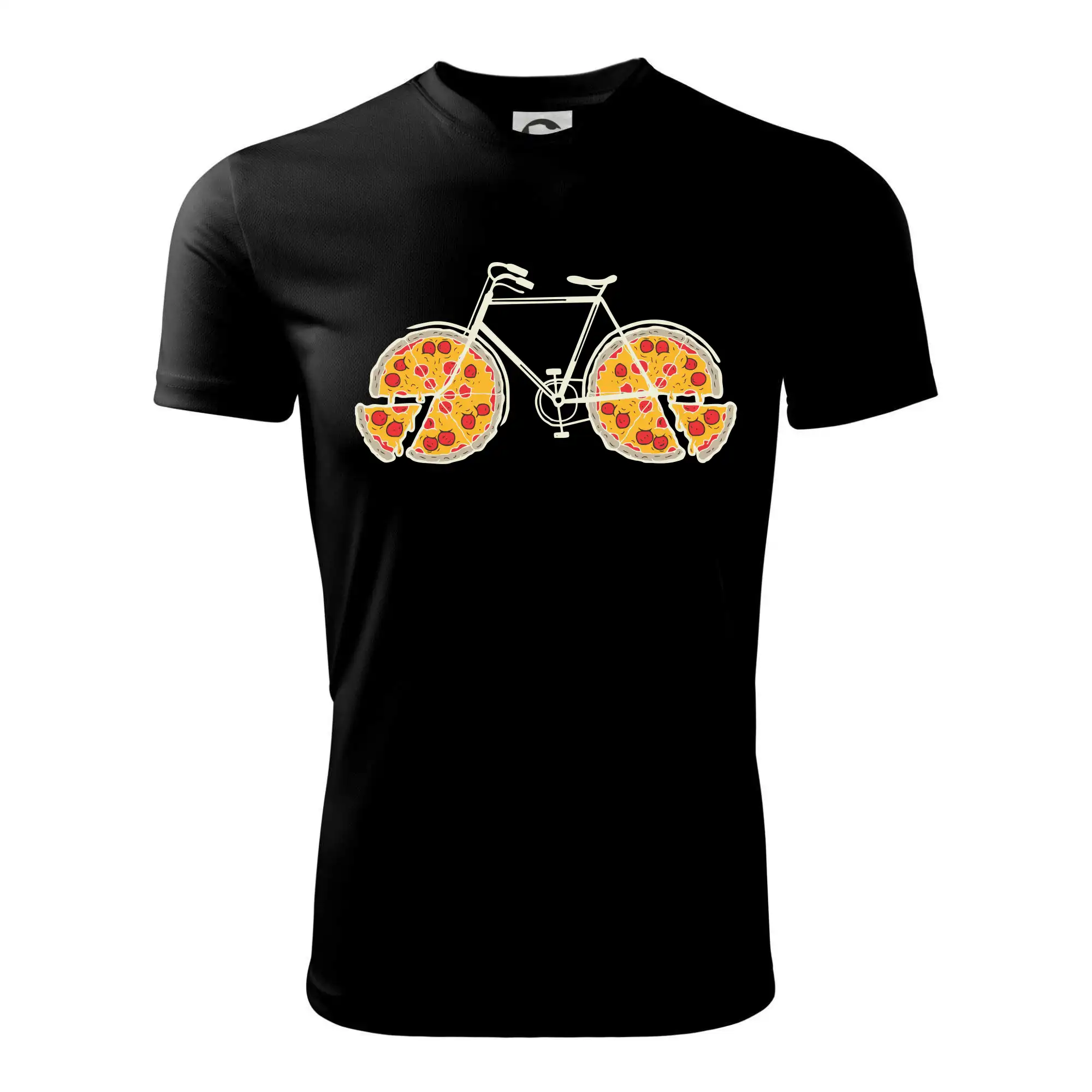 Tričko pre cyklistu, ktorý má rád šport a pizzu. Aj cyklista si niekedy musí poriadne dobiť baterky. Cyklistické tričko s pizza kolesami je vtipný darček pre cyklistu. Schválne, čo sa stane s pizzou, ak poriadne šliapneš do pedálov..to Ti ukáže toto cyklo tričko.