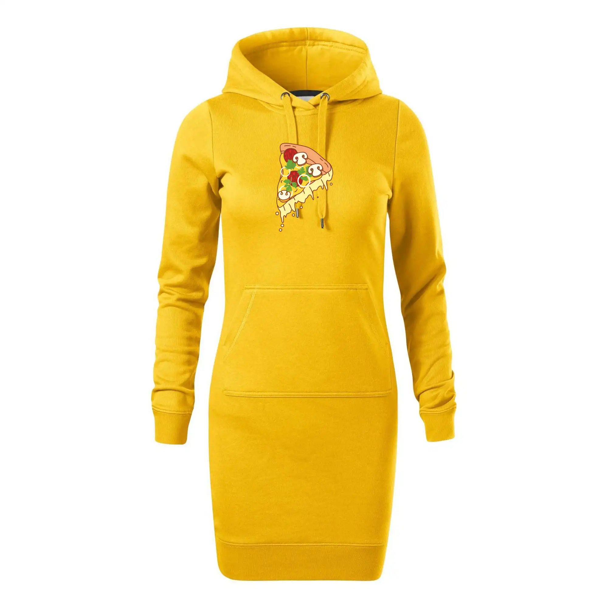 Dámske mikinové šaty MALFINI Snap 419 sú ideálnou voľbou pre ženy, ktoré hľadajú pohodlný a štýlový kúsok na voľný čas alebo každodenné nosenie. Ľahko vypasovaný strih s bočnými švami podčiarkuje ženskú siluetu, zatiaľ čo kapucňa s podšívkou a sťahovacou šnúrkou dodáva ležérny vzhľad. Šaty majú dĺžku nad kolená a sú vybavené našitým vreckom v štýle „klokanky“. Materiál je mäkký a príjemný na dotyk grâce à smesi bavlny a polyesteru s nepočesanou vnútornou stranou.
