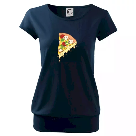 Trendové dámske tričko s veľmi krátkym rukávom, voľnejšieho strihu, v dolnom kraji všité do širokého lemu. Okrúhly priekrčník s úzkym lemom zo zhodného materiálu.