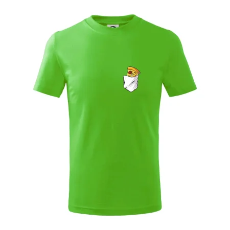 Detské tričko strednej gramáže s bočnými švami. Úzky priekrčník s prídavkom 5% elastanu. Vnútorná časť zadného priekrčníka začistená tkanou páskou. Spevnený ramenný šev.
